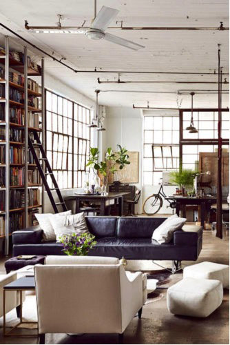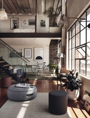 Az ipari stílus diadalmenete a XIX. sz.-i Franciországban kezdődött, elhagyatott gyárépületek lakóépületekké alakításával, mégis Amerikában terjedt el leginkább a két világháború között. Az épületek adottságából fakadóan legfontosabb stílusjegyei a nagy belmagasság és a hatalmas terek, óriási ablakfelületek, fény. A burkolatok nyersen, minimális funkcionális felületkezeléssel jelennek meg, a bútorzat többnyire modern és túlméretezett. Szék: A híres építésztől, Le Corbusier-től való szék a stílus egyik legjellegzetesebb bútordarabja, örök klasszikussá vált, számtalan újragondolt változata létezik.